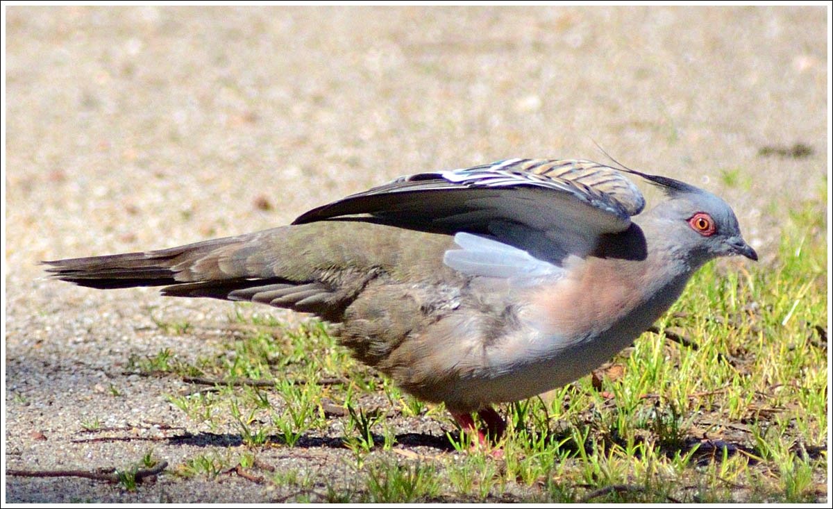 Crested Pigeon having a stretch.
