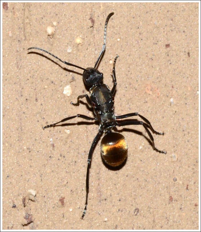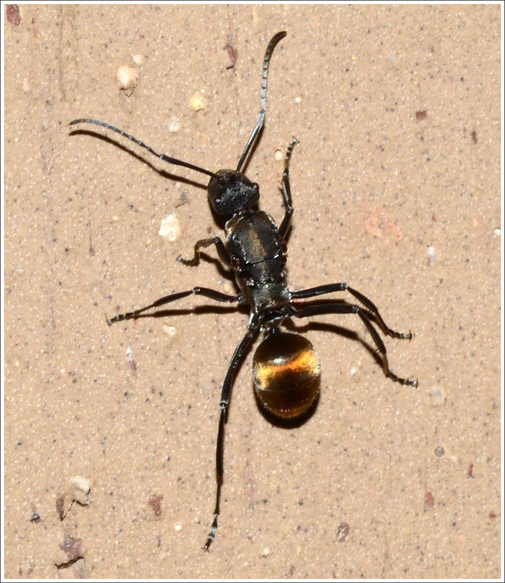 The Golden-tailed Spiny Ant, Polyrachis ammon has been spotted occasionally out in the bush, but for the first time one was seen on the wall of the house. Did it arrive in firewood, or is there a colony somewhere on the property….click to enlarge.